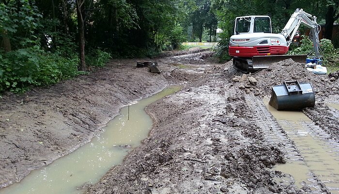 Unser Ziel ist es Natur zu erhalten. Hierfür setzen wir modernste Technik ein und schaffen im Rahmen von Renaturierungsprojekten neuen Raum für Flüsse und Bäche.
